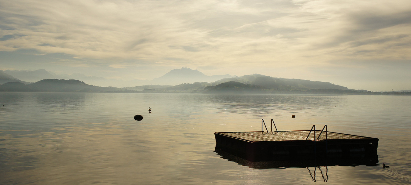 Das Seebad Walchwil bietet grosszügige Liegeflächen sowie ein schönes Holzliegedeck.